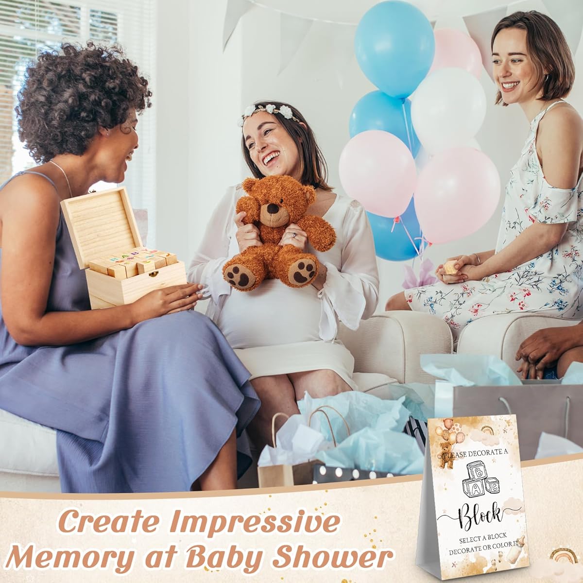136pcs Marsui Shower Block Building - 98 Wood Blocks, 36 Markers & Storage Box with Alphabet, Numbers, Patterns - Gender Reveal Party Games, DIY Decor, Announcement Activity Kit for & Showers