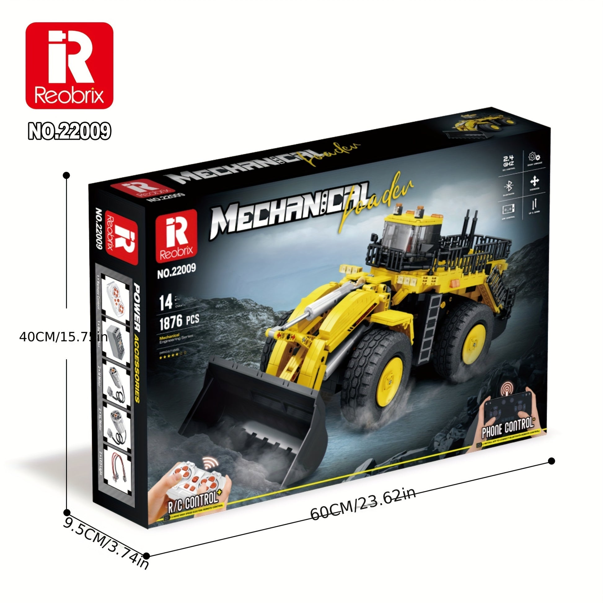 1876pcs Reobrix 22009 Yellow Shovel Loader Building Blocks, Remote Control Crane Vehicle Building Model Kits, High Difficulty Toy Assembly Model, Halloween, Christmas And Birthday Gift for Adults