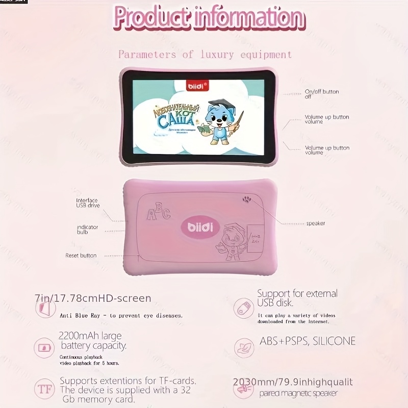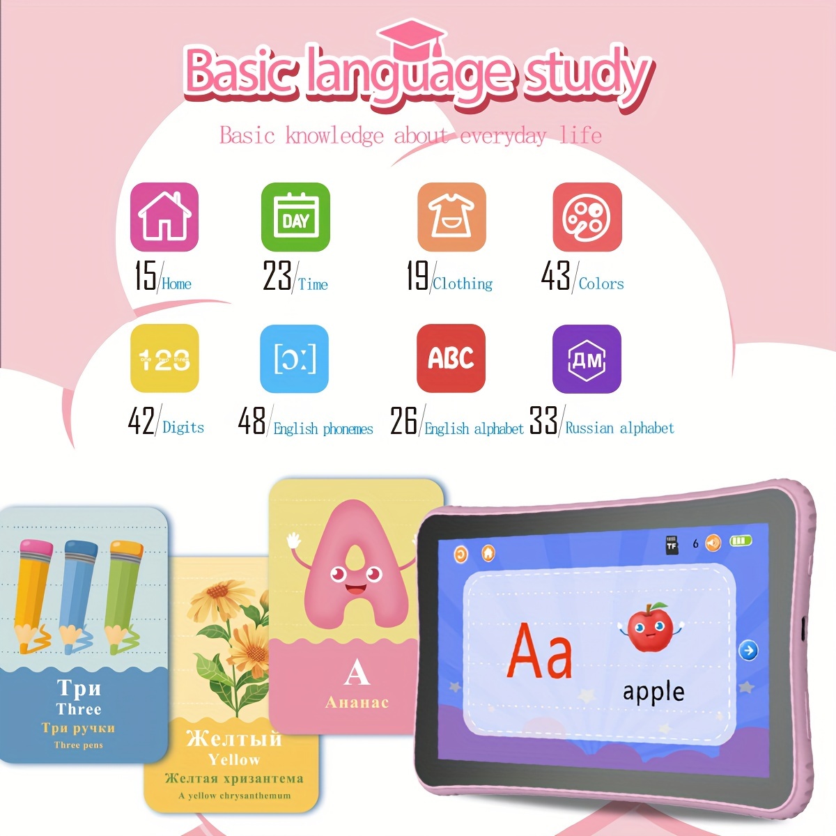 7-inch Tablet, 32GB ROM Board Computer TXT Screen, Learning Apps, Educational Games, Learning Education Toddler Tablet with Protective Sleeve Tablet Case