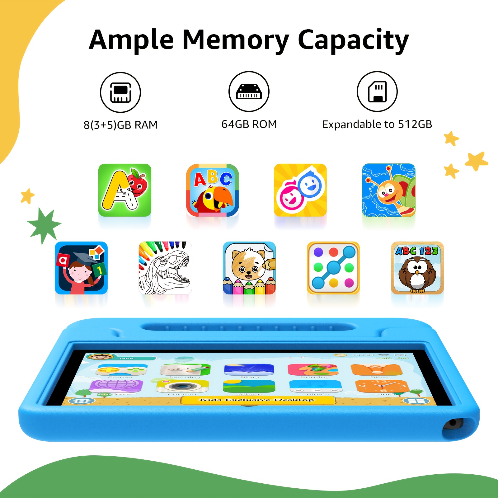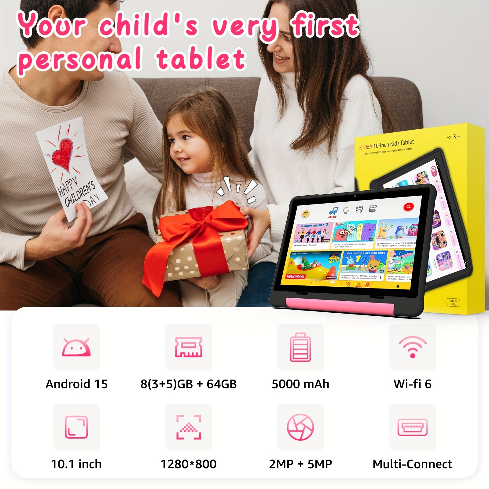 Apolosign 2025 10.1 Inch Android 13\u002F14\u002F15 Kids Tablet, 8(3+5)GB+64GB, 8-Core, WiFi 6, 5MP+2MP, 1280*800 HD Display, Parental Control, Educational, Shockproof & Handheld Case, Kids Space, Halloween Christmas Gift, Pre-Installed Apps, Tablet, Pad